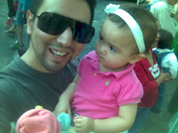 Lo bueno es que de eso no te mueres y hasta te acostumbras!, eso sí, ayer después de la comida caímos como piedras, pero nuestro lindo retoño coopero como niña grande y durmió 2 horitas a la par de sus papás… después la compensamos con un cuarto de dona de Krispy Cream! Y hasta gorrito le tocó!!!!! (no hay foto x q no llevaba mi teléfono, se quedó sin pila).